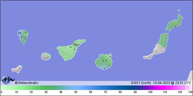 | 10-04-2023 | | | Máx. | Mín. | | | Temperatura | 29,9 | 12,9 | °C | | Humedad | 69 | 17 | % | | Viento | 55 | n/a | km/h | | Presión | 1.022 | 1.019 | hPa |