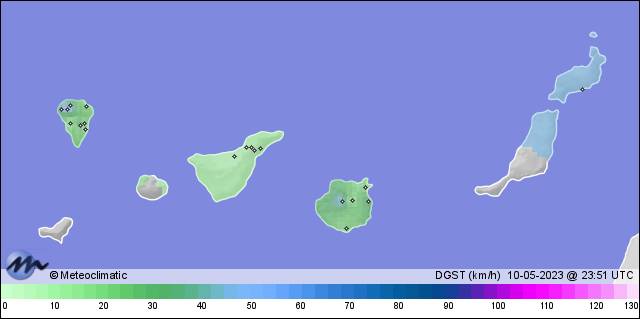 | 10-05-2023 | | | Máx. | Mín. | | | Temperatura | 24,9 | 19,9 | °C | | Humedad | 82 | 64 | % | | Viento | 35 | n/a | km/h | | Presión | 1.013 | 1.011 | hPa | | Precipitación | 0,0 | mm |