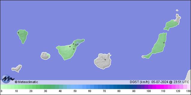 | 05-07-2024 | | | Máx. | Mín. | | | Temperatura | 29,9 | 18,4 | °C | | Humedad | 48 | 5 | % | | Viento | 34 | n/a | km/h | | Presión | 1.015 | 1.012 | hPa | | Precipitación | 0,0 | mm |