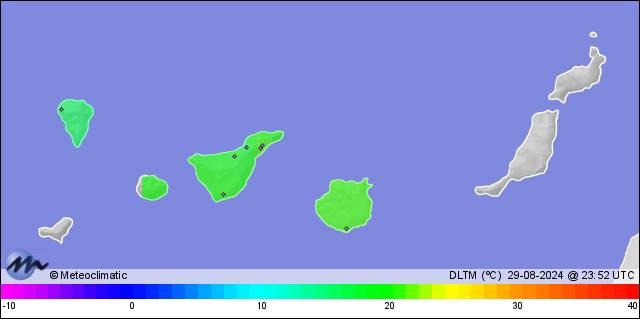| 29-08-2024 | | | Máx. | Mín. | | | Temperatura | 25,2 | 16,4 | °C | | Humedad | 100 | 75 | % | | Viento | 40 | n/a | km/h | | Presión | 1.018 | 1.015 | hPa |