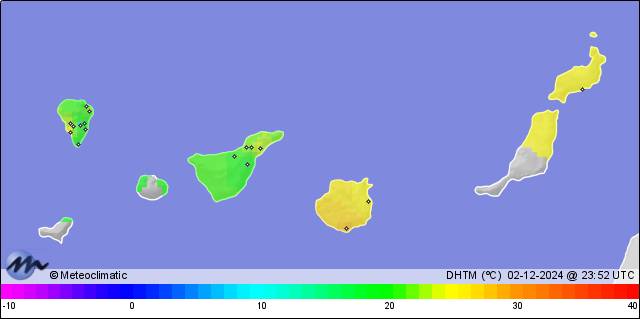 | 02-12-2024 | | | Máx. | Mín. | | | Temperatura | 23,1 | 15,9 | °C | | Humedad | 99 | 51 | % | | Viento | 13 | n/a | km/h | | Presión | 1.022 | 1.020 | hPa |