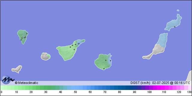 | 01-07-2025 | | | Máx. | Mín. | | | Temperatura | 26,6 | 20,1 | °C | | Humedad | 98 | 71 | % | | Viento | 46 | n/a | km/h | | Presión | 1.007 | 1.004 | hPa | | Precipitación | 0,0 | mm |