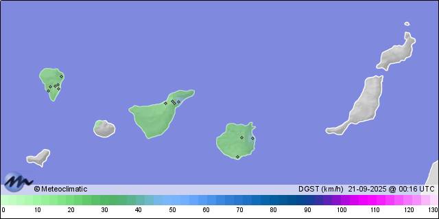 | 20-09-2025 | | | Máx. | Mín. | | | Temperatura | 32,5 | 26,2 | °C | | Humedad | 48 | 32 | % | | Viento | 63 | n/a | km/h | | Presión | 1.018 | 1.016 | hPa | | Precipitación | 0,0 | mm |
