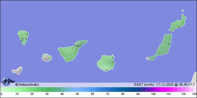 | Las Palmas de GC | 30 | 18,0 | 18,6 | 16,5 | 78 | 88 | 72 | 1.029 | 1.031 | 1.029 | 1 NNE | 17 | 0,3 | 293,8 | |