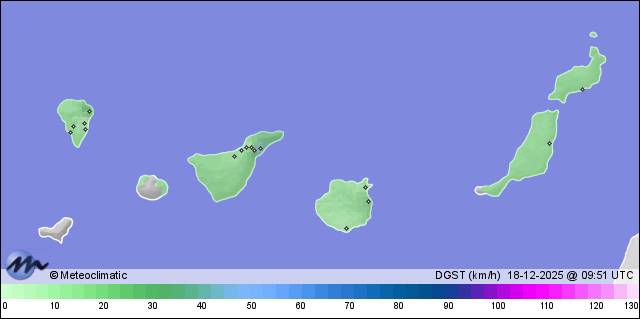 | Ojos de Garza - Telde | 32 | 16,4 | 17,7 | 16,2 | 90 | 93 | 81 | 1.017 | 1.018 | 1.017 | - | 26 | 2,3 | 232,7 | |