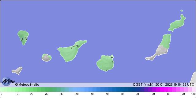 | Ojos de Garza - Telde | 32 | 15,5 | 15,6 | 15,1 | 74 | 75 | 74 | 1.018 | 1.019 | 1.018 | 13 NNE | 26 | - | 36,6 | |