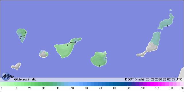 | Ojos de Garza - Telde | 32 | 18,0 | 18,1 | 18,0 | 75 | 75 | 74 | 1.015 | 1.016 | 1.015 | 21 NNE | 42 | - | 44,4 | |