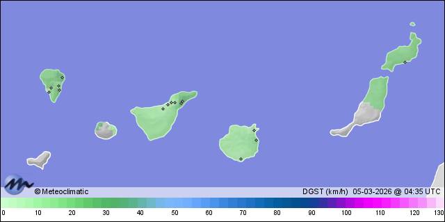 | Ojos de Garza - Telde | 32 | 16,5 | 17,1 | 16,5 | 84 | 84 | 80 | 1.016 | 1.017 | 1.016 | 8 NNE | 22 | 0,3 | 59,7 | |