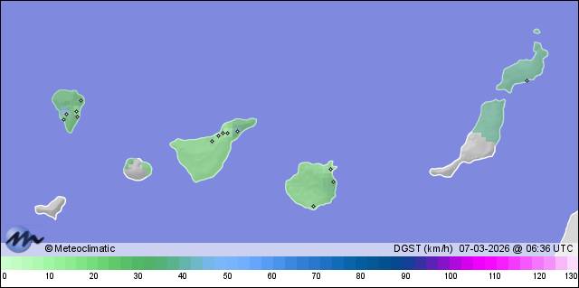 | Ojos de Garza - Telde | 32 | 15,0 | 15,7 | 14,6 | 66 | 74 | 59 | 1.015 | 1.017 | 1.014 | 11 NNE | 35 | - | 62,7 | |