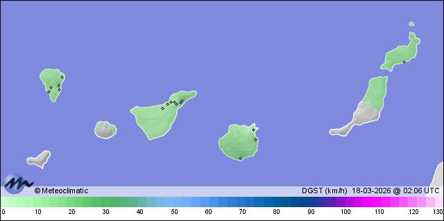 | Ojos de Garza - Telde | 32 | 17,5 | 17,5 | 17,2 | 83 | 85 | 82 | 1.003 | 1.004 | 1.003 | 12 NNE | 26 | - | 66,3 | |