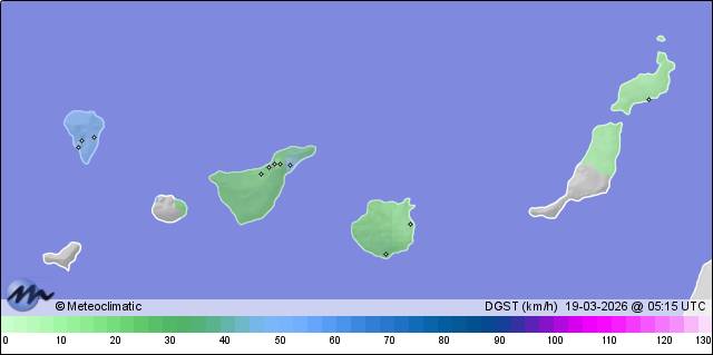 | Actualizado: 03:39 UTC | 12,4°C 71% | 13,5 °C / 75% | | 11,7°C / 59% | | 10 km/h N | | 52 km/h | | 1.000 hPa |