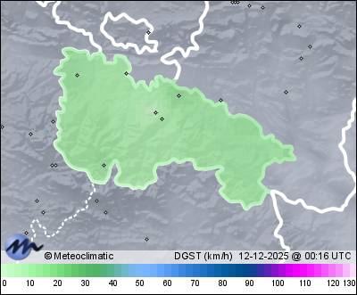 | Actualizado: 13:14 UTC | 9,7°C 79% | 9,7 °C / 93% | | 7,5°C / 79% | | 4 km/h E | | 44 km/h | | 1.022 hPa |
