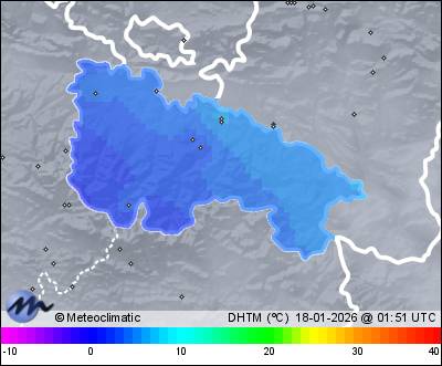 | Actualizado: 13:13 UTC | 3,7°C 93% | 4,2 °C / 99% | | -0,5°C / 90% | | Calma | | 2 km/h | | 2,5 mm |