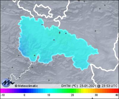 | 23-01-2021 | | | Máx. | Mín. | | | Temperatura | 9,3 | 6,0 | °C | | Humedad | 90 | 64 | % | | Viento | 39 | n/a | km/h | | Presión | 1.009 | 998 | hPa | | Precipitación | 3,2 | mm |