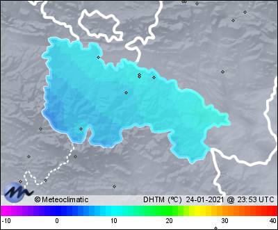 | 24-01-2021 | | | Máx. | Mín. | | | Temperatura | 7,8 | 3,9 | °C | | Humedad | 92 | 65 | % | | Viento | 53 | n/a | km/h | | Presión | 1.016 | 1.008 | hPa | | Precipitación | 10,9 | mm |