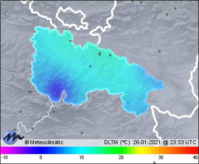 | 26-01-2021 | | | Máx. | Mín. | | | Temperatura | 12,5 | 2,5 | °C | | Humedad | 94 | 74 | % | | Viento | 26 | n/a | km/h | | Presión | 1.024 | 1.020 | hPa | | Precipitación | 0,0 | mm |