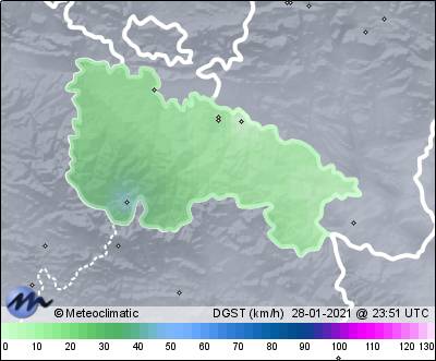 | 28-01-2021 | | | Máx. | Mín. | | | Temperatura | 17,1 | 11,9 | °C | | Humedad | 80 | 69 | % | | Viento | 55 | n/a | km/h | | Presión | 1.025 | 1.019 | hPa | | Precipitación | 0,0 | mm |