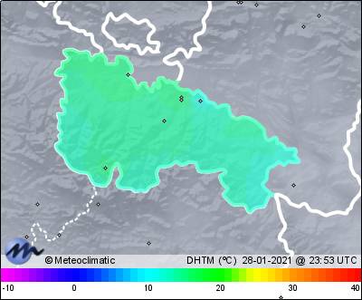 | 28-01-2021 | | | Máx. | Mín. | | | Temperatura | 15,7 | 8,1 | °C | | Humedad | 95 | 75 | % | | Viento | 24 | n/a | km/h | | Presión | 1.024 | 1.018 | hPa | | Precipitación | 0,0 | mm |
