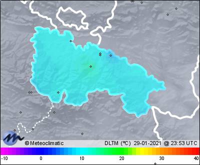| 29-01-2021 | | | Máx. | Mín. | | | Temperatura | 14,6 | 10,2 | °C | | Humedad | 85 | 67 | % | | Viento | 37 | n/a | km/h | | Presión | 1.025 | 1.015 | hPa | | Precipitación | 0,0 | mm |