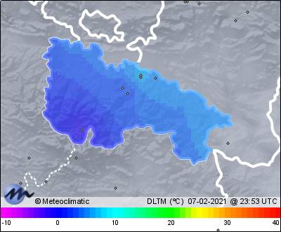 | 07-02-2021 | | | Máx. | Mín. | | | Temperatura | 9,4 | 3,2 | °C | | Humedad | 85 | 60 | % | | Viento | 40 | n/a | km/h | | Presión | 1.010 | 1.004 | hPa | | Precipitación | 1,2 | mm |