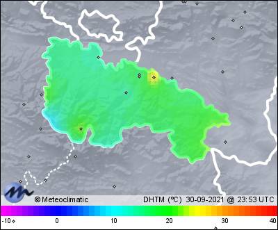 | 30-09-2021 | | | Máx. | Mín. | | | Temperatura | 23,9 | 10,9 | °C | | Humedad | 71 | 34 | % | | Viento | 23 | n/a | km/h | | Presión | 1.030 | 1.023 | hPa | | Precipitación | 0,0 | mm |