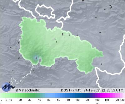 | 24-12-2021 | | | Máx. | Mín. | | | Temperatura | 12,4 | 8,3 | °C | | Humedad | 81 | 47 | % | | Viento | 45 | n/a | km/h | | Presión | 1.018 | 1.010 | hPa | | Precipitación | 0,0 | mm |
