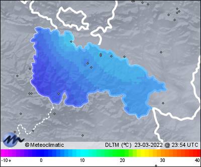 | 23-03-2022 | | | Máx. | Mín. | | | Temperatura | 12,4 | 5,8 | °C | | Humedad | 80 | 58 | % | | Viento | 42 | n/a | km/h | | Presión | 1.024 | 1.021 | hPa | | Precipitación | 0,0 | mm |
