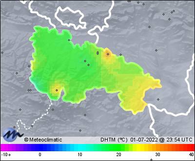 | 01-07-2022 | | | Máx. | Mín. | | | Temperatura | 25,1 | 7,8 | °C | | Humedad | 87 | 36 | % | | Viento | 21 | n/a | km/h | | Presión | 1.020 | 1.015 | hPa | | Precipitación | 0,0 | mm |