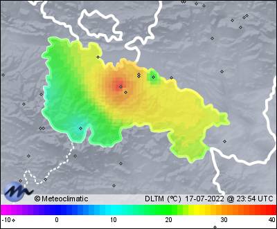 | 17-07-2022 | | | Máx. | Mín. | | | Temperatura | 36,4 | 23,6 | °C | | Humedad | 46 | 24 | % | | Viento | 35 | n/a | km/h | | Presión | 1.015 | 1.012 | hPa | | Precipitación | 0,0 | mm |