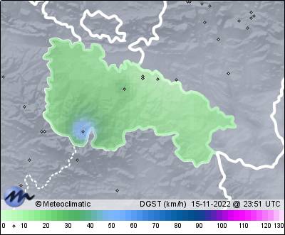 | 15-11-2022 | | | Máx. | Mín. | | | Temperatura | 15,9 | 8,3 | °C | | Humedad | 96 | 60 | % | | Viento | 52 | n/a | km/h | | Presión | 1.012 | 1.004 | hPa | | Precipitación | 0,4 | mm |