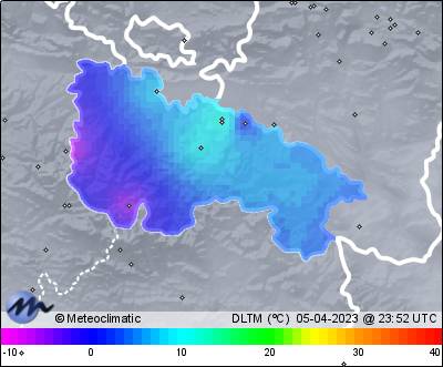 | 05-04-2023 | | | Máx. | Mín. | | | Temperatura | 17,9 | -5,3 | °C | | Humedad | 81 | 6 | % | | Viento | 26 | n/a | km/h | | Presión | 1.025 | 1.020 | hPa | | Precipitación | 0,0 | mm |