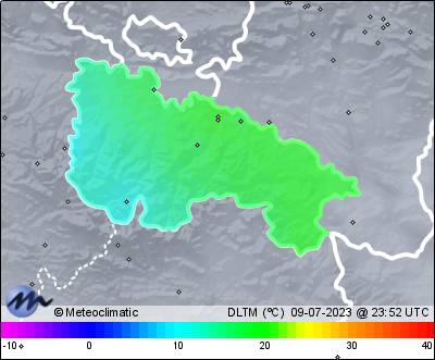 | 09-07-2023 | | | Máx. | Mín. | | | Temperatura | 31,8 | 10,5 | °C | | Humedad | 93 | 26 | % | | Viento | 34 | n/a | km/h | | Presión | 1.028 | 1.022 | hPa | | Precipitación | 0,0 | mm |