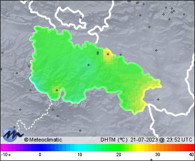 | 21-07-2023 | | | Máx. | Mín. | | | Temperatura | 22,8 | 11,5 | °C | | Humedad | 88 | 56 | % | | Viento | 39 | n/a | km/h | | Presión | 1.024 | 1.019 | hPa | | Precipitación | 0,0 | mm |