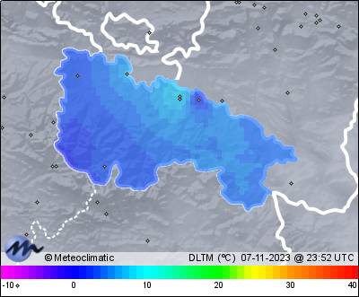 | 07-11-2023 | | | Máx. | Mín. | | | Temperatura | 6,3 | 3,1 | °C | | Humedad | 95 | 75 | % | | Viento | 24 | n/a | km/h | | Presión | 1.026 | 1.023 | hPa | | Precipitación | 3,6 | mm |