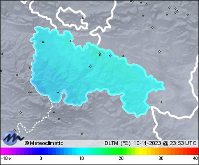 | 10-11-2023 | | | Máx. | Mín. | | | Temperatura | 10,7 | 7,9 | °C | | Humedad | 92 | 76 | % | | Viento | 40 | n/a | km/h | | Presión | 1.021 | 1.016 | hPa | | Precipitación | 4,2 | mm |