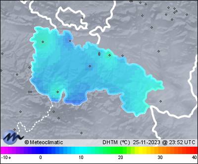 | 25-11-2023 | | | Máx. | Mín. | | | Temperatura | 12,6 | 3,8 | °C | | Humedad | 92 | 70 | % | | Viento | 19 | n/a | km/h | | Presión | 1.015 | 1.013 | hPa | | Precipitación | 0,0 | mm |