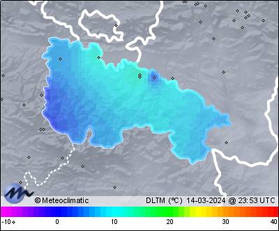 | 14-03-2024 | | | Máx. | Mín. | | | Temperatura | 18,8 | 3,6 | °C | | Humedad | 78 | 41 | % | | Viento | 37 | n/a | km/h | | Presión | 1.020 | 1.016 | hPa | | Precipitación | 0,0 | mm |