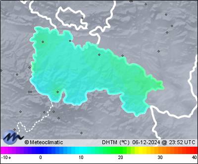 | 06-12-2024 | | | Máx. | Mín. | | | Temperatura | 15,0 | 9,8 | °C | | Humedad | 95 | 77 | % | | Viento | 40 | n/a | km/h | | Presión | 1.029 | 1.025 | hPa | | Precipitación | 0,2 | mm |