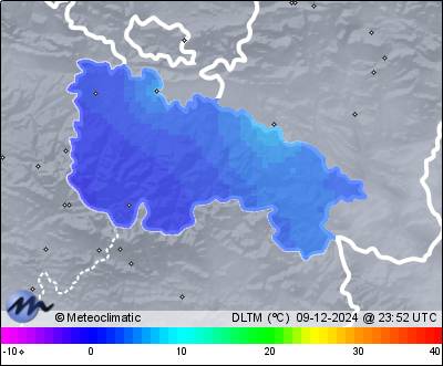 | 09-12-2024 | | | Máx. | Mín. | | | Temperatura | 3,9 | 0,6 | °C | | Humedad | 95 | 87 | % | | Viento | 48 | n/a | km/h | | Presión | 1.022 | 1.019 | hPa | | Precipitación | 8,2 | mm |