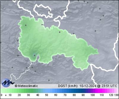| 10-12-2024 | | | Máx. | Mín. | | | Temperatura | 5,2 | 2,7 | °C | | Humedad | 78 | 67 | % | | Viento | 32 | n/a | km/h | | Presión | 1.023 | 1.021 | hPa | | Precipitación | 1,2 | mm |