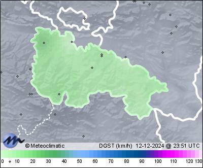 | 12-12-2024 | | | Máx. | Mín. | | | Temperatura | 4,9 | -0,8 | °C | | Humedad | 98 | 83 | % | | Viento | 26 | n/a | km/h | | Presión | 1.025 | 1.022 | hPa | | Precipitación | 0,0 | mm |