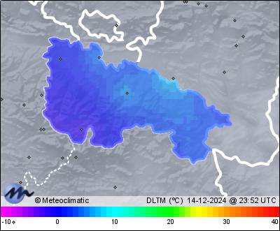| 14-12-2024 | | | Máx. | Mín. | | | Temperatura | 8,4 | -1,9 | °C | | Humedad | 95 | 61 | % | | Viento | 19 | n/a | km/h | | Presión | 1.038 | 1.028 | hPa | | Precipitación | 0,0 | mm |