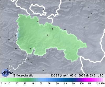 | 03-01-2025 | | | Máx. | Mín. | | | Temperatura | 9,7 | 0,0 | °C | | Humedad | 77 | 72 | % | | Viento | 39 | n/a | km/h | | Presión | 1.029 | 1.024 | hPa | | Precipitación | 6,4 | mm |