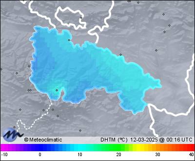 | 11-03-2025 | | | Máx. | Mín. | | | Temperatura | 10,3 | 5,2 | °C | | Humedad | 95 | 74 | % | | Viento | 21 | n/a | km/h | | Presión | 1.007 | 1.003 | hPa | | Precipitación | 8,7 | mm |