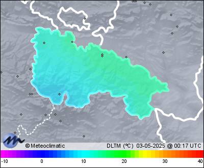 | 02-05-2025 | | | Máx. | Mín. | | | Temperatura | 16,2 | 9,8 | °C | | Humedad | 95 | 65 | % | | Viento | 37 | n/a | km/h | | Presión | 1.013 | 1.010 | hPa | | Precipitación | 17,6 | mm |