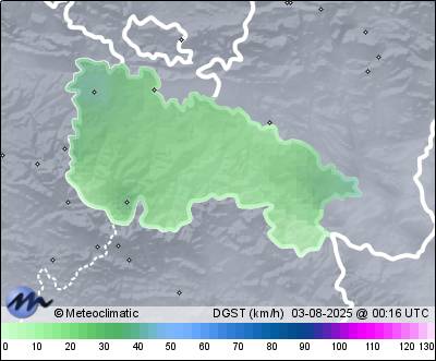 | 02-08-2025 | | | Máx. | Mín. | | | Temperatura | 26,2 | 9,4 | °C | | Humedad | 93 | 47 | % | | Viento | 32 | n/a | km/h | | Presión | 1.024 | 1.019 | hPa | | Precipitación | 0,0 | mm |