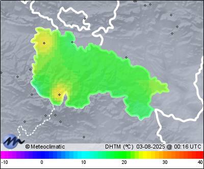 | 02-08-2025 | | | Máx. | Mín. | | | Temperatura | 28,9 | 16,8 | °C | | Humedad | 78 | 37 | % | | Viento | 32 | n/a | km/h | | Presión | 1.015 | 1.011 | hPa | | Precipitación | 0,0 | mm |