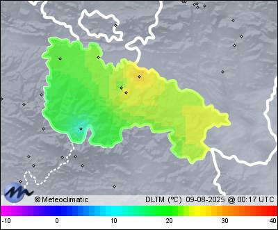 | 08-08-2025 | | | Máx. | Mín. | | | Temperatura | 35,9 | 17,0 | °C | | Humedad | 90 | 29 | % | | Viento | 32 | n/a | km/h | | Presión | 1.013 | 1.010 | hPa | | Precipitación | 0,0 | mm |