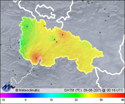 | 08-08-2025 | | | Máx. | Mín. | | | Temperatura | 34,3 | 19,5 | °C | | Humedad | 85 | 38 | % | | Viento | 18 | n/a | km/h | | Presión | 1.016 | 1.013 | hPa | | Precipitación | 0,0 | mm |