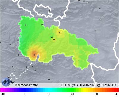 | 09-08-2025 | | | Máx. | Mín. | | | Temperatura | 32,5 | 18,1 | °C | | Humedad | 82 | 36 | % | | Viento | 39 | n/a | km/h | | Presión | 1.016 | 1.012 | hPa | | Precipitación | 0,0 | mm |